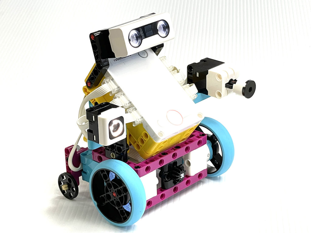 We have designed it to make it easier to practice basic programming. I installed all the color sensors, ultrasonic sensors, and touch sensors. You can practice simple programs using the sensor as is. I also attached the L motor to the rear and brought the power to the front via the shaft. I’m looking forward to using attachments to do various jobs in the future.